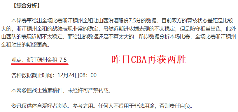 篮战士近期状态调整回归!昨日CBA取得两场胜利,近期CBA赛事篮战士获得7胜5战绩,篮战士近期赛事收获胜利不断!让篮战士充分展现出对各大篮球联赛分析的专业知识及数据统计能力。本期篮战士利用大数据分析,演算出赛事有利方案,充满信心为大家奉献一场精彩的赛事预测,期待大家继续关注篮战士精准赛事!
