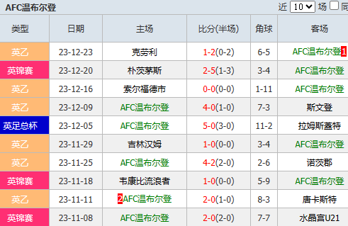 2、两队在此前8次交锋当中,AFC温布尔登3胜1平4负,略处下风。