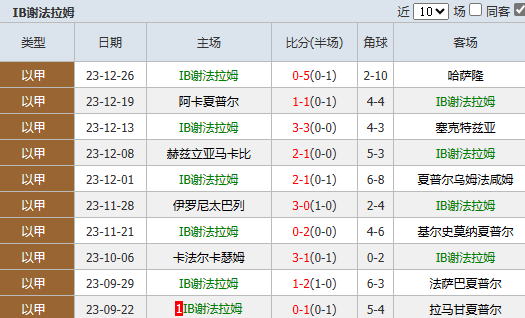 2、在上轮比赛主场0-5大比分负于哈萨隆后,IB谢法拉姆已经连续4轮联赛不胜。