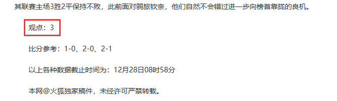 观点回顾为已完场赛事的统计,并不能代表未来的观点预测结果走势,观点仅为其个人意见,与平.台无关。资讯仅供体育爱好者浏览,并不构成购.彩建议,任何人不得用于非法用途,请广大用户理性消费。