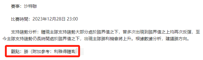 【解鎖內容為以上賽事支持趨勢預測圖展示,以及根據分析預測圖進行相對低機率方向觀點判斷。解鎖內容僅代表個人知識領域觀點,與本網站無關】