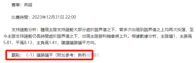 【解鎖內容為以上賽事支持趨勢預測圖展示,以及根據分析預測圖進行相對低機率方向觀點判斷。解鎖內容僅代表個人知識領域觀點,與本網站無關】