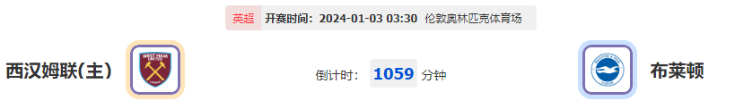 北京时间1月23日03:30,英超第20轮,西汉姆联对阵布莱顿。西汉姆联近期表现不俗,此番回到主场迎战仍不失底气,他们能否压制对手?而布莱顿挣扎后开始回升,当下也是为抢分而战,球队此役能否如愿全身而退?