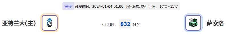 北京时间01月04日01:00,意杯第3轮,萨索洛vs亚特兰大。亚特兰大仍居上游位置,如今状态还是火热,他们能否在此役继续取胜?萨索洛落后不少战意不明,当下还是多轮不胜的势头,此役作战谁是更有作为的一方?