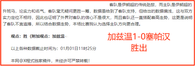 大家好!我是X程式,涉及足球领域10余载,对于各种联赛的性质具有丰富的分析经验,有着近5年的各类主流联赛的欧亚趋势数据库,擅长基本面的捕捉,对于各界走势变化的对比有独特的见解。