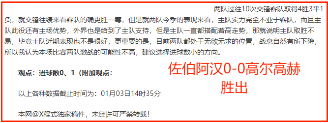 (温馨提示:观点回顾为已完场赛事的统计,并不能代表未来的观点预测结果走势,观点仅为其个人意见,与平.台无关。资讯仅供体育爱好者浏览,并不构成购.彩建议,任何人不得用于非法用途,请广大用户理性消费。)