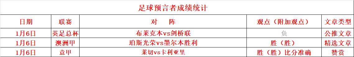 昨天公推、精选、赞赏分别送出了3场比赛,赞赏以及精选文章不负所望继续取胜,而且赞赏连比分也准确拿捏;精选也迎来了4连胜,状态杠杠的;长期稳定的发挥才是大家想要的结果,希望大家可以继续支持,不想错过的可能选择包周更加合适。