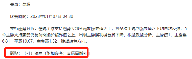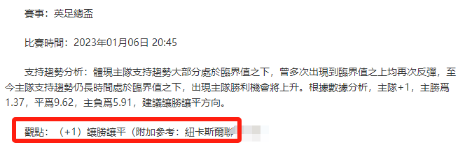 【解鎖內容為以上賽事支持趨勢預測圖展示,以及根據分析預測圖進行相對低機率方向觀點判斷。解鎖內容僅代表個人知識領域觀點,與本網站無關】
