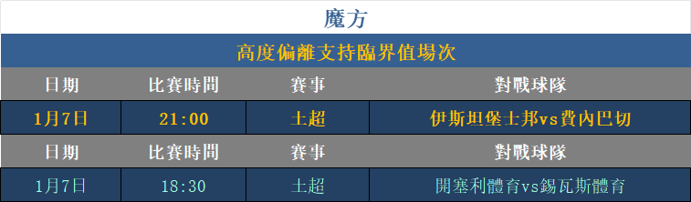 魔方昨日金場4勝3,其中英足總盃專場清版全勝,整體勝負各半。魔方對於週六日數據捕捉較爲精準,接下來魔方將會不斷努力務求精益求精!今日針對土超、意甲以及進行深研。