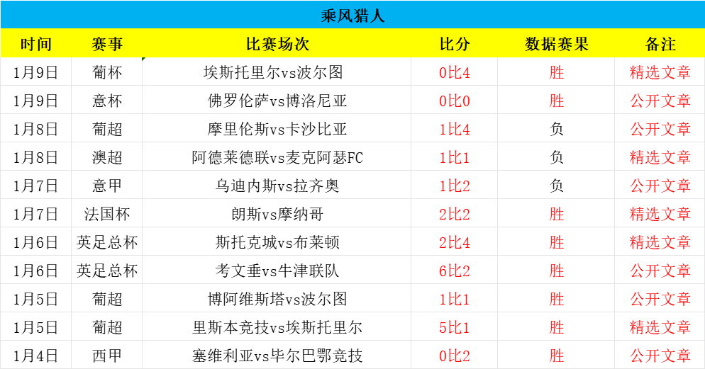 大家好,我是乘风猎人,职业数据分析师,足球经验丰富,研究足球数据数十载,期望能够乘风破浪,精准猎球制胜,欢迎朋友们长期关注!