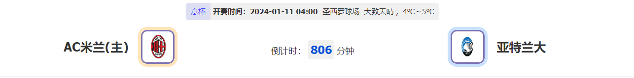 北京时间1月11日04:00,意杯半准决赛比赛,对阵双方分别是主场的AC米兰和客场的亚特兰大,AC米兰联赛表现相当出色,可惜保持状态不算稳定,亚特兰大状态起伏不定,而且交手历来还处于下风,本场有机会反客为主?