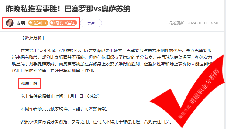 温馨提示:观点回顾为已完场赛事的统计,并不能代表未来的观点预测结果走势,观点仅为其个人意见,与平.台无关。资讯仅供体育爱好者浏览,并不构成购.彩建议,任何人不得用于非法用途,请广大用户理性消费。
