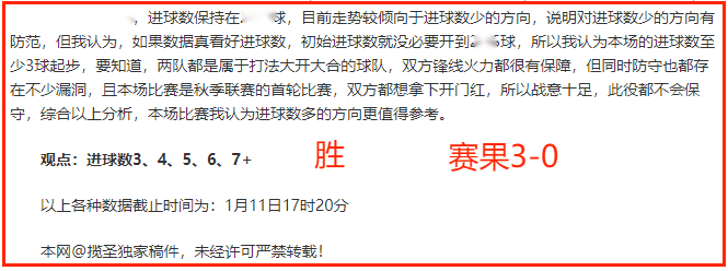 (温馨提示:观点回顾为已完场赛事的统计,并不能代表未来的观点预测结果走势,观点仅为其个人意见,与平.台无关。资讯仅供体育爱好者浏览,并不构成购.彩建议,任何人不得用于非法用途,请广大用户理性消费。)