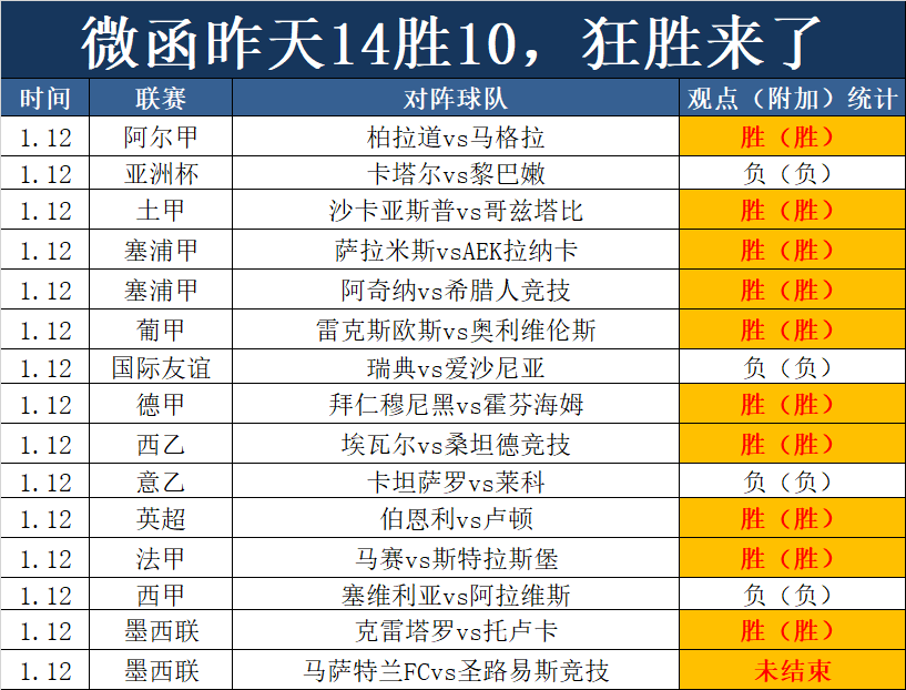 1、昨天再次狂胜,昨天取下14胜10的成绩,早场还有1场墨西联未结束,墨西哥系列依然高效,早场第1场先打出,墨西哥系列开赛至今6胜5,今天各类重点赛事来了。