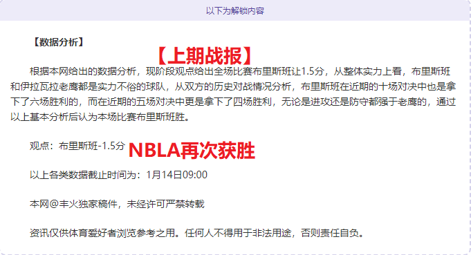 笔者在昨日赛事仅仅拿下一胜,独家分析的数据继续分享给各位粉丝们,紧随作者步伐,专业分析师的实力早已得到粉丝们的认可,准为粉丝们带来胜利的果实,关注我,让大家了解到什么是真正的篮球预测!
