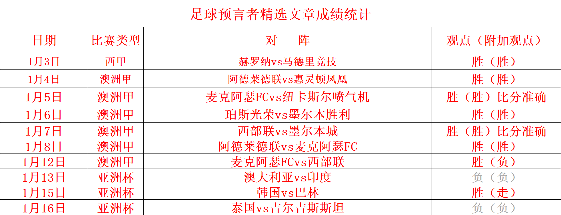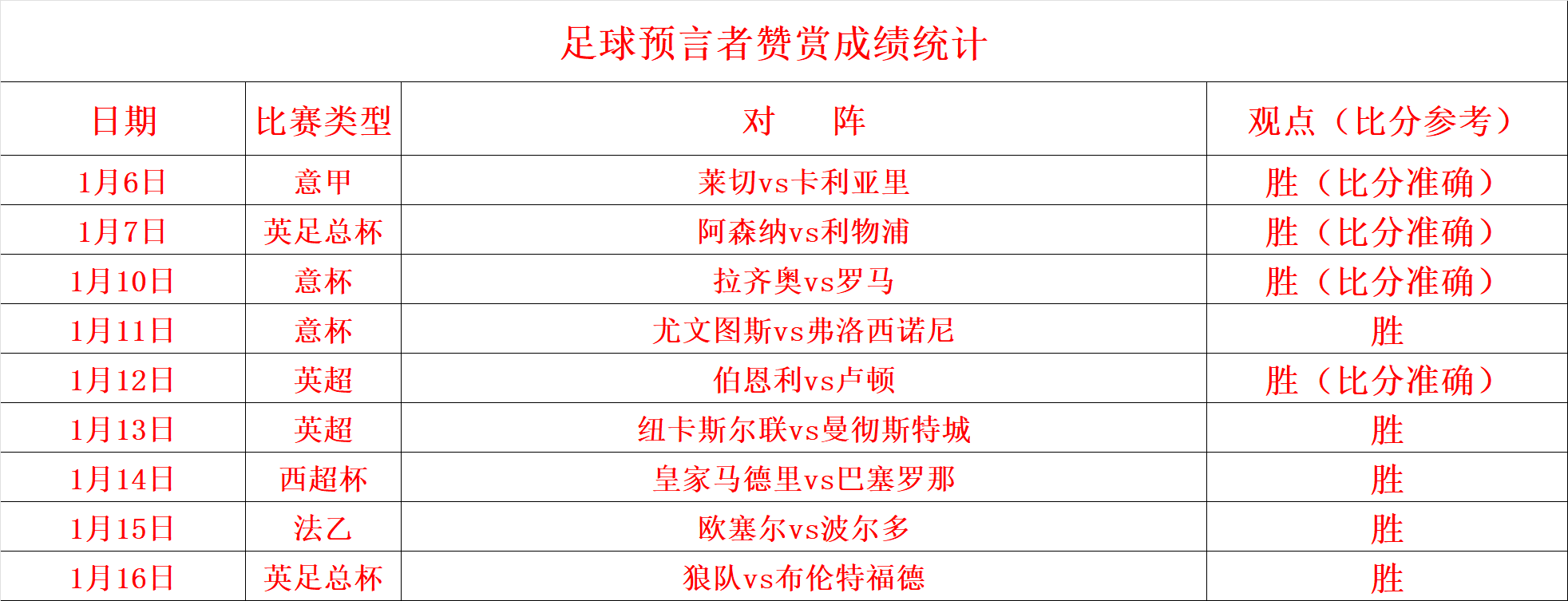 (温馨提示:观点回顾为已完场赛事的统计,并不能代表未来的观点预测结果走势,观点仅为其个人意见,与平.台无关。资讯仅供体育爱好者浏览,并不构成购.彩建议,任何人不得用于非法用途,请广大用户理性消费。)