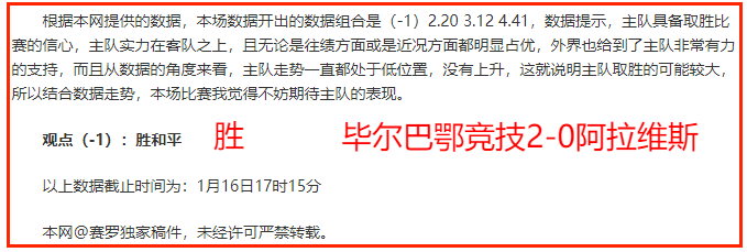 昨天公推的西杯赛事毕尔巴鄂竞技vs阿拉维斯,主胜方向准确打出,今天乘胜追击。