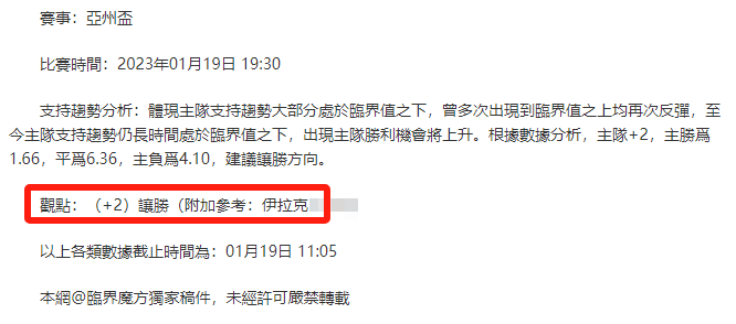 【解鎖內容為以上賽事支持趨勢預測圖展示,以及根據分析預測圖進行相對低機率方向觀點判斷。解鎖內容僅代表個人知識領域觀點,與本網站無關】