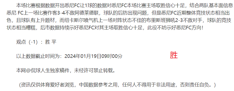 (温馨提示:观点回顾为已完场赛事的统计,并不能代表未来的观点预测结果走势,观点仅为其个人意见,与平.台无关。资讯仅供体育爱好者浏览,并不构成购.彩建议,任何人不得用于非法用途,请广大用户理性消费。)