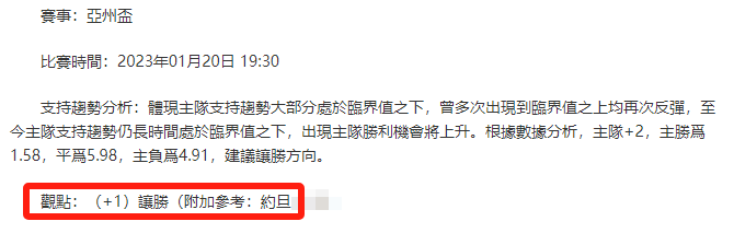 【解鎖內容為以上賽事支持趨勢預測圖展示,以及根據分析預測圖進行相對低機率方向觀點判斷。解鎖內容僅代表個人知識領域觀點,與本網站無關】