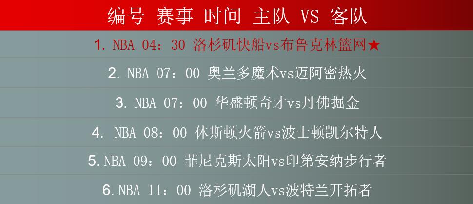 赛事前瞻:(标★赛事表示五星标红为信心赛事)