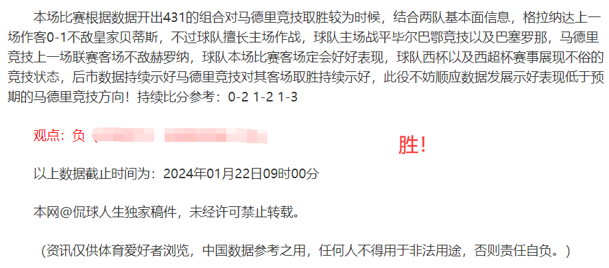 (温馨提示:观点回顾为已完场赛事的统计,并不能代表未来的观点预测结果走势,观点仅为其个人意见,与平.台无关。资讯仅供体育爱好者浏览,并不构成购.彩建议,任何人不得用于非法用途,请广大用户理性消费。)