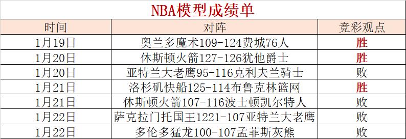 昨天的NBA赛事成绩不理想,篮概师今天已经在调整当中。今天继续给出两场NBA模型,希望大家喜欢(今天该反弹了)。