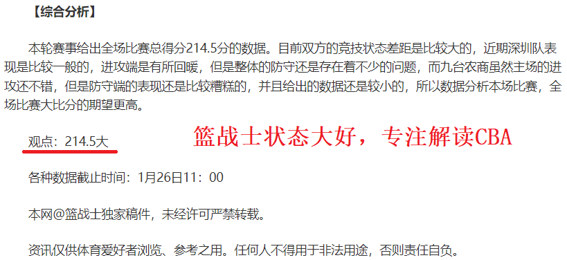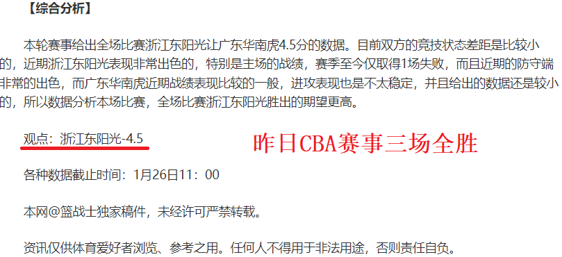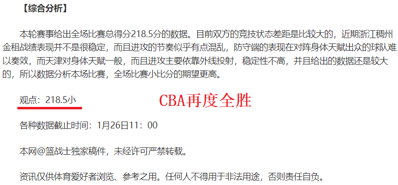 篮战士近期CBA赛事状态大好,昨日CBA赛事全部获得胜利,篮战士近期赛事收获胜利不断!让篮战士充分展现出对各大篮球联赛分析的专业知识及数据统计能力。本期篮战士利用大数据分析,演算出赛事有利方案,充满信心为大家奉献一场精彩的赛事预测,期待大家继续关注篮战士精准赛事!