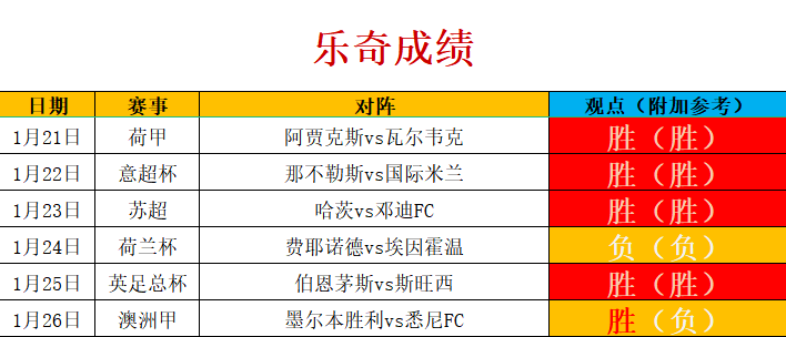 (温馨提示:观点回顾为已完场赛事的统计,并不能代表未来的观点预测结果走势,观点仅为其个人意见,与平.台无关。资讯仅供体育爱好者浏览,并不构成购.彩建议,任何人不得用于非法用途,请广大用户理性消费。)
