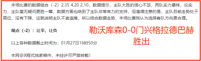 (温馨提示:观点回顾为已完场赛事的统计,并不能代表未来的观点预测结果走势,观点仅为其个人意见,与平.台无关。资讯仅供体育爱好者浏览,并不构成购.彩建议,任何人不得用于非法用途,请广大用户理性消费。)