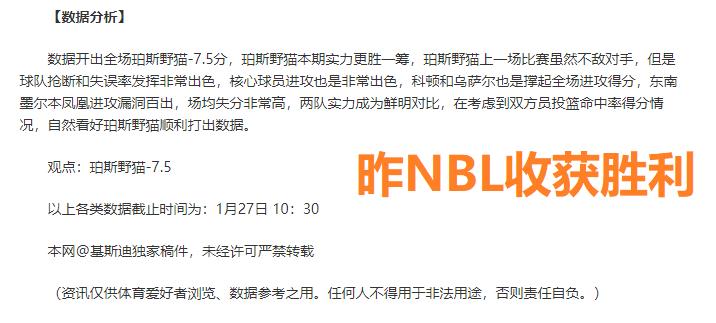 近段时间整体收获4胜3,昨天NBL和CBA收获胜利,精选赛事掌握方式已进入佳境,基斯迪篮球独立分析给到大家非同凡响的感觉,延续胜利轨道继续深入探讨,资深独特分析胜利前进步伐从未停止,连胜指日可待!资深篮球爱好者,用独立分析早场赛事再为大家奉上。以下再为大家分享一场精彩赛事,敬请期待!