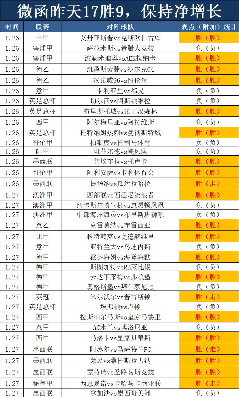 1、昨天保持狂胜节奏,有9场正确观点打出,3场平,昨天成绩16胜9,目前保持稳定的成绩,今天狂胜模式继续。