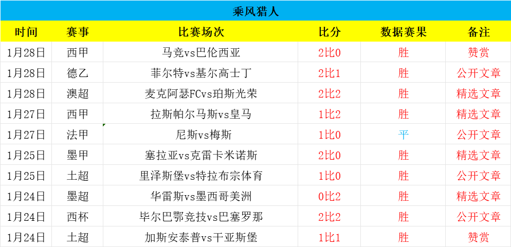 大家好,我是乘风猎人,职业数据分析师,足球经验丰富,研究足球数据数十载,期望能够乘风破浪,精准猎球制胜,欢迎朋友们长期关注!