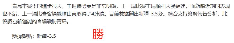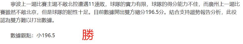 (溫馨提示:觀點回顧為已完場賽事的統計,並不能代表未來的觀點預測結果走勢,觀點僅為其個人意見,與平.臺無關。資訊僅供體育愛好者瀏覽,並不構成購.彩建議,任何人不得用於非法用途,請廣大用戶理性消費。)