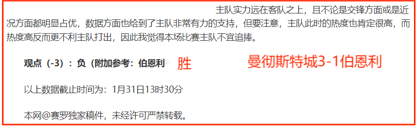 (温馨提示:观点回顾为已完场赛事的统计,并不能代表未来的观点预测结果走势,观点仅为其个人意见,与平.台无关。资讯仅供体育爱好者浏览,并不构成购.彩建议,任何人不得用于非法用途,请广大用户理性消费。)