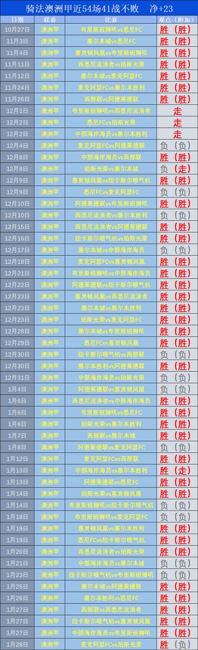 昨天笔者交出了一场西甲联赛的比赛,赫塔菲vs皇家马德里,作客的皇家马德里凭借何塞卢的梅开二度以0:2的比分拿下胜利,笔者的赛前观点得到顺利走出!目前成绩为11胜9的优秀状态,本日带来了一场澳洲甲联赛的比赛,布里斯班狮吼vs惠灵顿凤凰,并在数据分析部分加入了全新主客战意形势进行参考,在过去的3个月时间里,笔者交出的54场澳洲甲赛事拿下41个不败观点,并且有效成绩取得优秀的净+23场正向收获!争取再以成功的分析收获大家的青睐,在新的一天拿下胜利,希望大家可以收获满满多多支持!