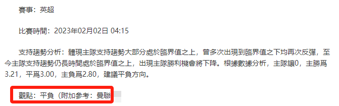 【解鎖內容為以上賽事支持趨勢預測圖展示,以及根據分析預測圖進行相對低機率方向觀點判斷。解鎖內容僅代表個人知識領域觀點,與本網站無關】