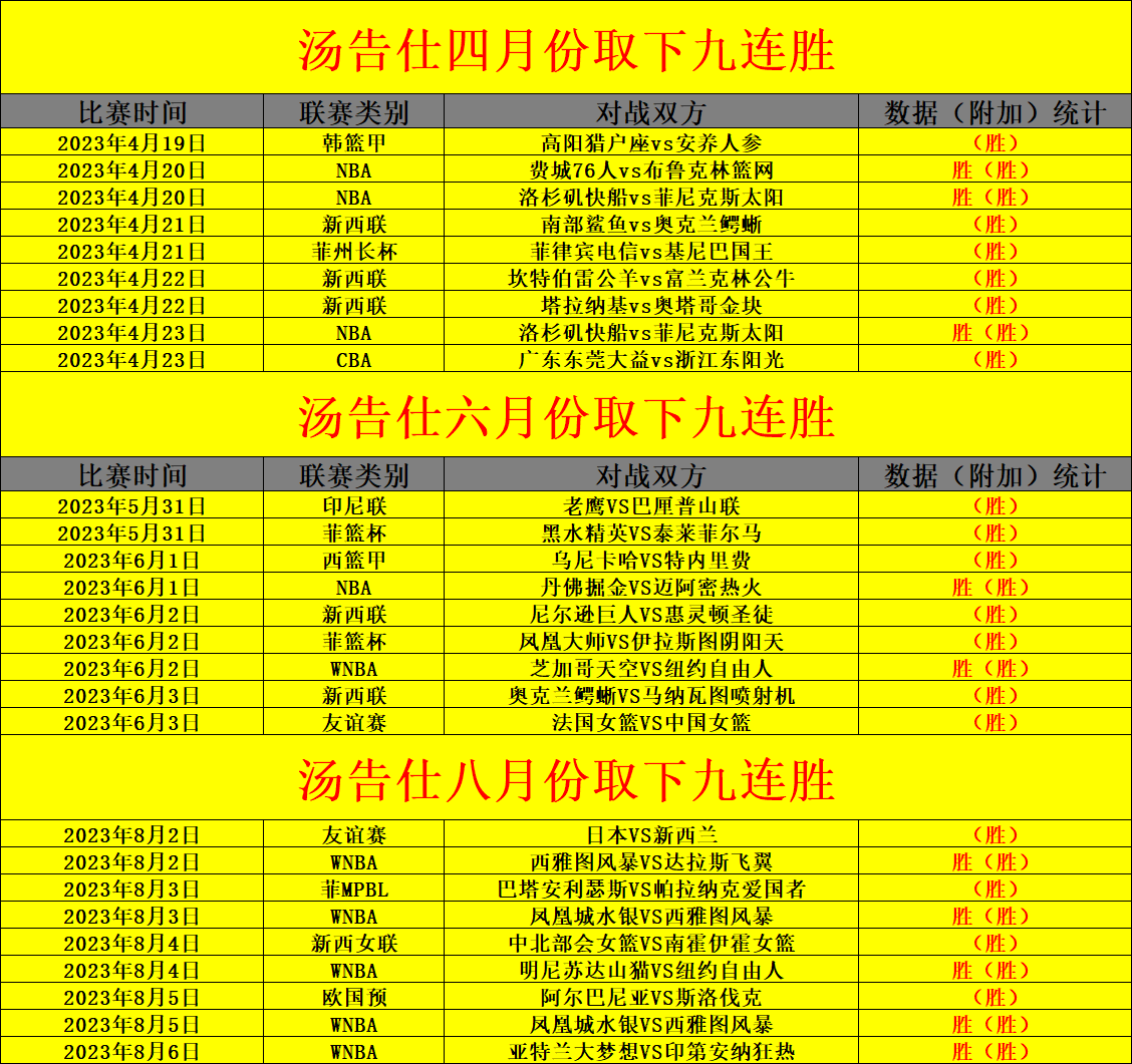 成绩回顾:作者在昨日两战再次全胜,近期取得了5胜4+三连胜战绩!近期一波长胜利也是深入人生,在篮球领域作者也是用心分析每一场比赛,为了胜利也是努力去奋斗,在近两年时间里面作者也是收获了多次的九连胜成绩,足以证明了作者的实力是不错的,在2024年作者继续戒骄戒躁的理念,全身心去力争每一场比赛分析是正确无误的!