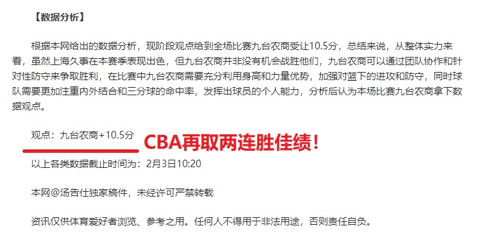 北京时间2024年2月4日19时35分,CBA继续火热进行中,浙江东阳光对阵山西汾酒股份,两队的实力差距不大,比赛的走向是怎么样?本人通过多年积累的赛事分析经验为老铁们慢慢解答。