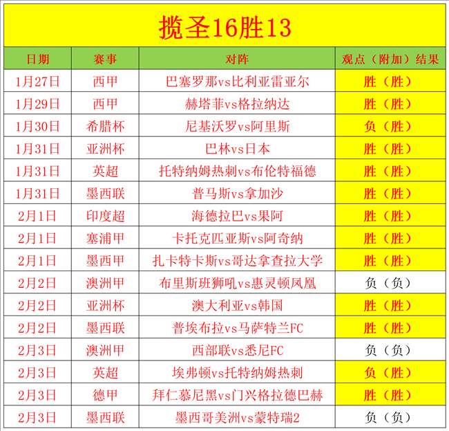 揽圣2023年10月4日至10月9日豪取18连胜。昨天4场2胜2负,表现中规中矩,目前是16胜13的佳绩,笔者状态依旧,今天我们再接再厉。足球比赛是追求长期的稳定,长期的关注才能得益,一时的下滑并不意味着失败,大家不要因为一时的下滑而放弃关注,笔者会努力挖掘更精准的赛事分享给大家,感谢大家的支持。