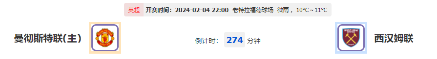 北京时间2月4日的晚上22点00分,英超联赛的第23轮赛事即将急需展开多场精彩角逐!——其中,传统老牌豪门曼彻斯特联将会坐镇老特拉福德球场迎战劲敌“铁锤帮”西汉姆联!近期正遭低迷状态打击的铁锤帮能否在客场全身而退?还是当前急需抢分冲击欧战区的曼联能够延续近期的强势,主场全取三分?