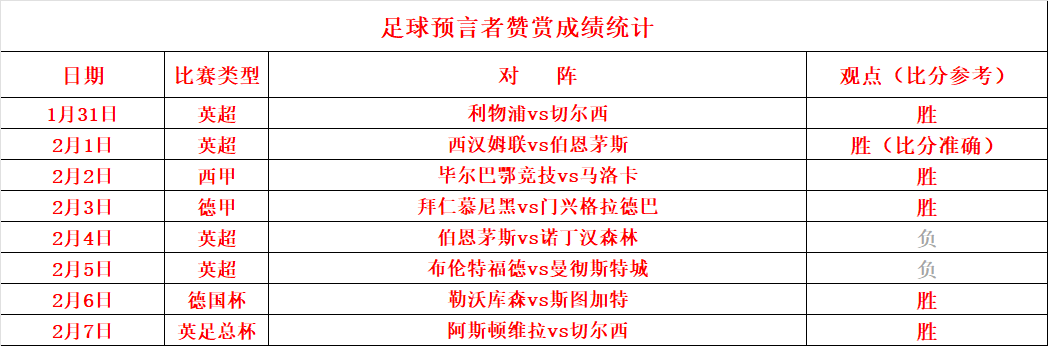 赞赏迎来了2连胜,昨天分享一场英足总杯的比赛,阿斯顿维拉vs切尔西,再次拿下胜利,赞赏整体成绩8胜6,表现还是不错的。而精选文章方面同样不甘示弱拿下胜利之余比分也是准确拿捏的,精选文章也迎来5胜4的表现。大家也不要因为一点起伏而放弃关注,长期稳定的发挥才是大家想要结果;不想错过预言者每一场比赛,包周会是一个更合适的选择。