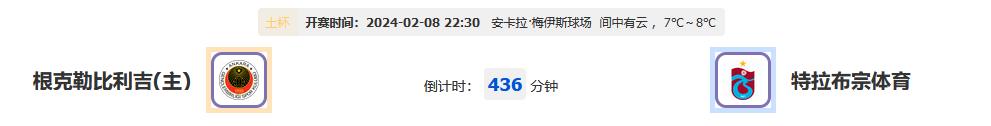 北京时间02月08日22:30,2023-2024 土耳其杯,根克勒比利吉vs特拉布宗体育,两队排名上差距不大,今天比赛两队会有怎样表现呢?