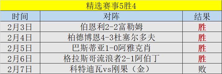 私推赛事28场败6、精选赛事5胜4、公推赛事11败2。