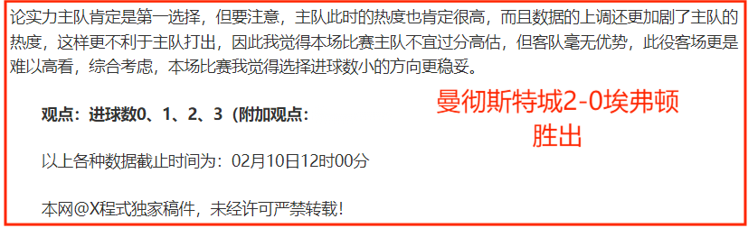 (温馨提示:观点回顾为已完场赛事的统计,并不能代表未来的观点预测结果走势,观点仅为其个人意见,与平.台无关。资讯仅供体育爱好者浏览,并不构成购.彩建议,任何人不得用于非法用途,请广大用户理性消费。)