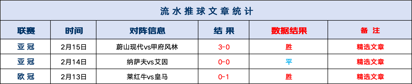【日韩教主】独家日韩比赛一手资讯,完善的比赛模型库,解读精准独到!赞赏回顾:流水昨天赞赏失利,精选解读亚冠蔚山现代3-1甲府风林,方向跑出。流水赞赏曾连续6周周榜第一,更是有156天总体正确率近7成(不含走)的长期稳定发挥,今天继续一起采摘果实!!!