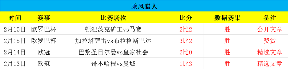 三天4场欧战全胜(欧冠+欧罗巴)+赞赏24场4负,昨赞赏的欧罗巴进球数成功打出5球,进球数拿下,公开的欧罗巴再拿下,欧战继续大捷!赞赏24场4负+近各项61场12负!精选21场4负!近期是极佳的状态,今日研究争取全胜,欢迎赞赏,再创佳绩!——今日重点参考乘胜追击!老铁们一起冲!