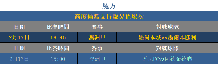 魔方昨日澳賽專場清版全勝,整體勝負各半。魔方對於週六日數據捕捉較爲精準,接下來魔方將會不斷努力務求精益求精!今日針對澳洲甲、歐賽以及墨西聯進行深研。