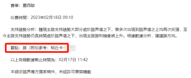 【解鎖內容為以上賽事支持趨勢預測圖展示,以及根據分析預測圖進行相對低機率方向觀點判斷。解鎖內容僅代表個人知識領域觀點,與本網站無關】