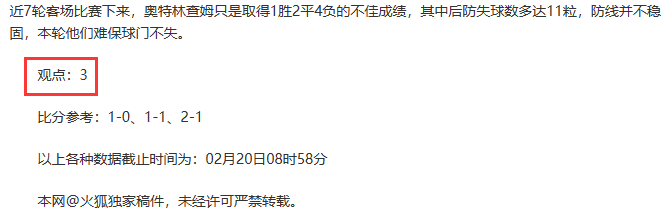观点回顾为已完场赛事的统计,并不能代表未来的观点预测结果走势,观点仅为其个人意见,与平.台无关。资讯仅供体育爱好者浏览,并不构成购.彩建议,任何人不得用于非法用途,请广大用户理性消费。